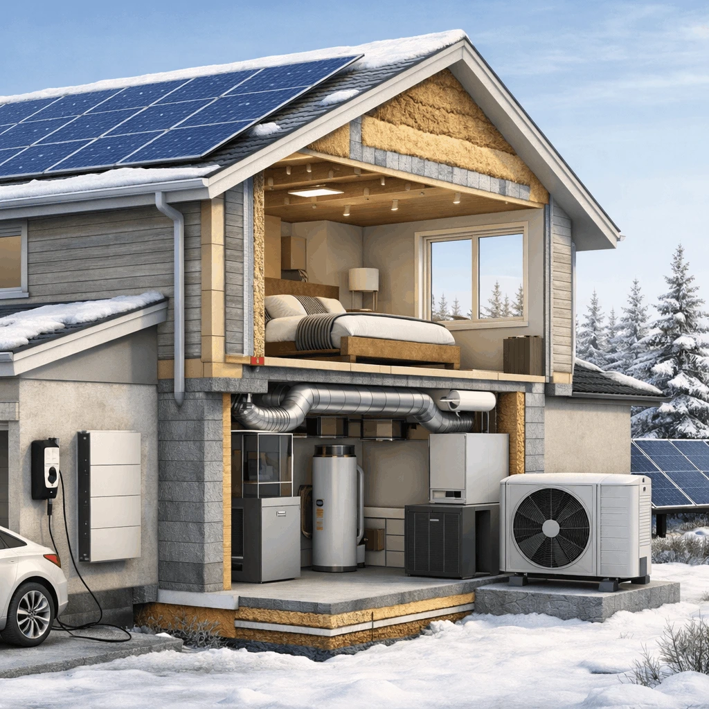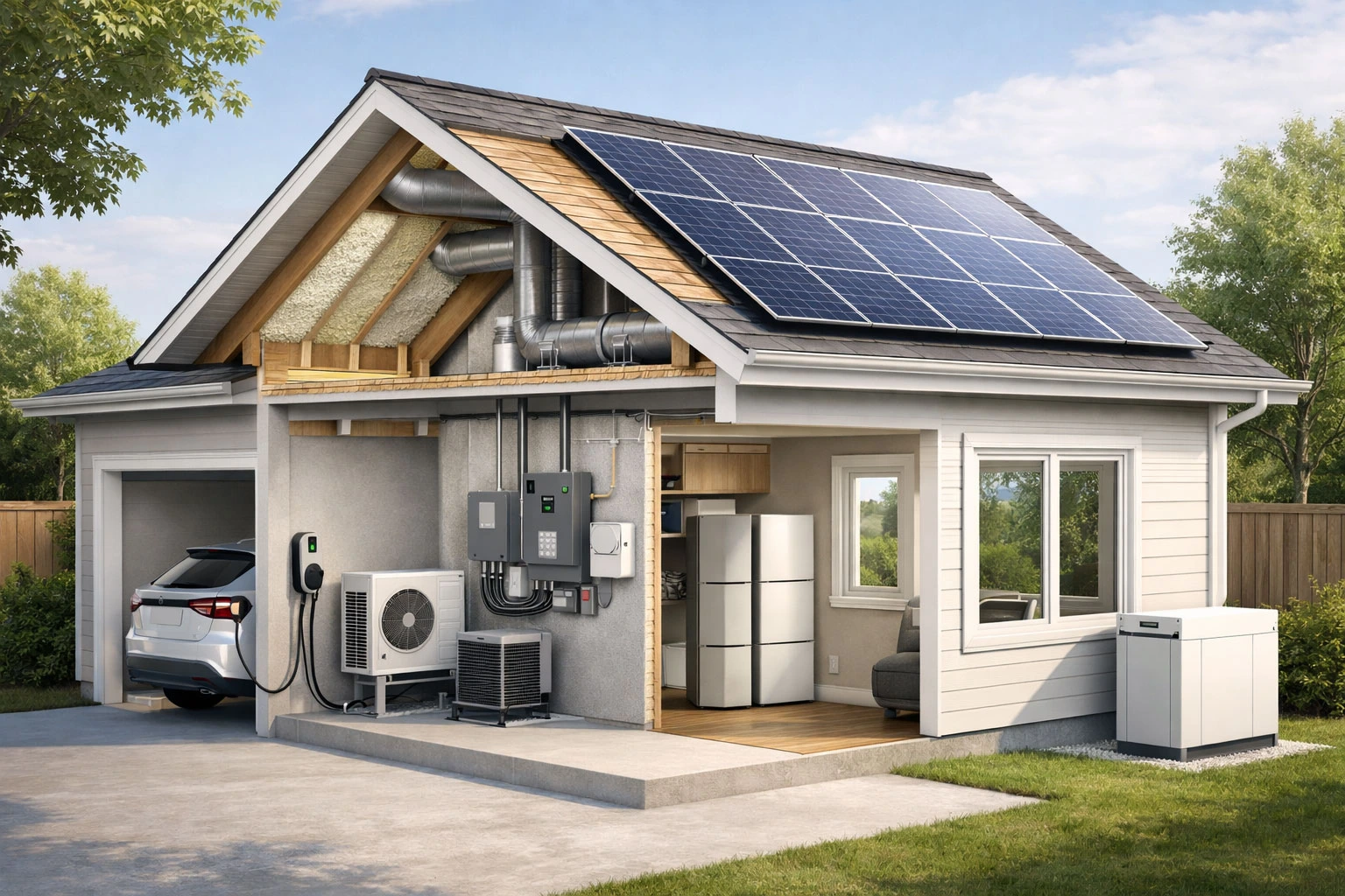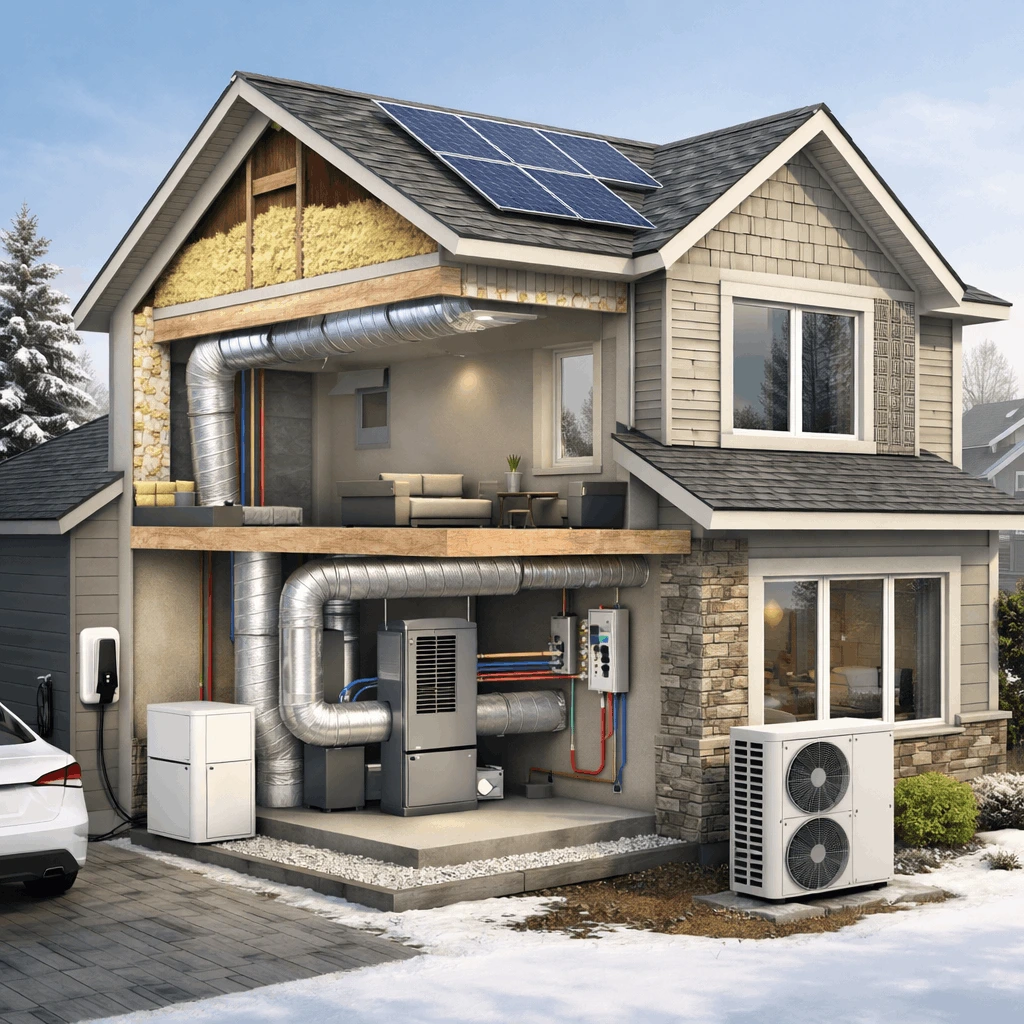 A Net Zero Home produces as much energy as it consumes annually. Through high-efficiency HVAC, solar energy, insulation, air sealing, and smart design, homeowners can dramatically reduce utility bills, improve comfort, and future-proof their homes.